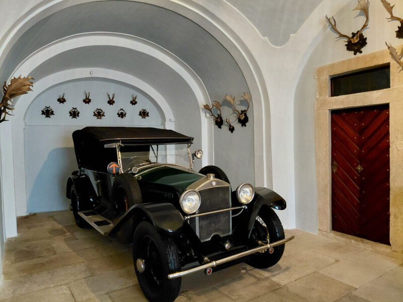 Hraběcí rodina také už v prvních desetiletích 20. století podlehla nově se rozvíjejícímu fenoménu automobilismu. Jedním z vozů, které se objevily ve vozovém parku rodiny, byla Tatra 17 Faeton z roku 1928. Stejný automobil do expozice bytu posledního majitele zapůjčil soukromý sběratel. Právě automobily byly rodinou hojně využívány k přemisťování se v rámci celé Evropy. Poslední generace majitelů, Leopold IV.Podstatzký a jeho manželka Marie roz. Kinská, se intenzivně věnovali sportovním aktivitám. Téma cestování za sportem a zdravím se tak potkává s tématem automobilismu, neboť rodina automobily využívala na cestách do nedalekých Tater a Alp na lyžování. Sama hraběnka také aktivně hrávala hokej, přičemž stejný hokejový klub v Telči existuje dodnes.