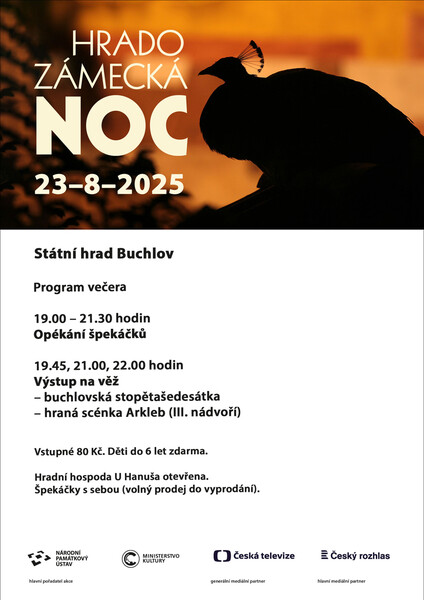 19.45, 21.00, 22.00 hodin – výstup na věž "buchlovská stopětašedesátka" + hraná scénka Arkleb
